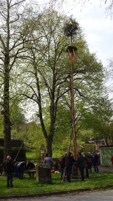 Gegen 11:00 Uhr werden wir mit vereinten Kräften den geschmückten Maibaum aufrichten.